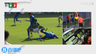 比赛第42分钟,姆班古拉左路拿球杀入药厂禁区,随后被回放的塔佩铲倒,裁判在VAR的介入下判罚点球!